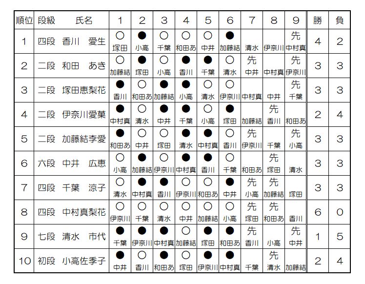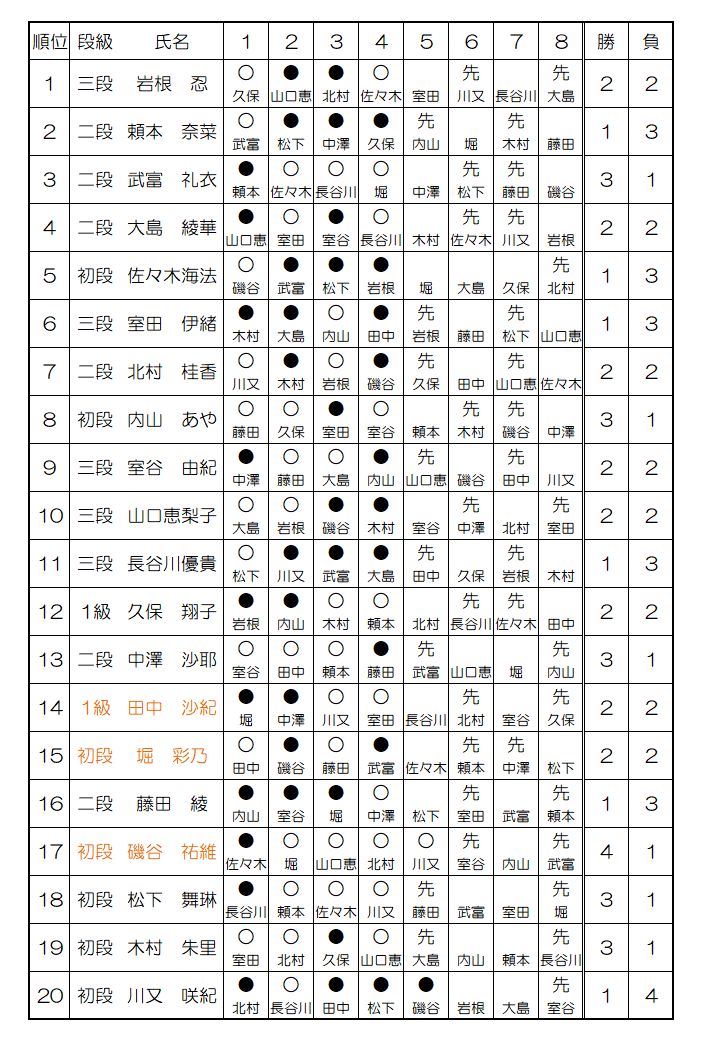 ・10/20(月) 上川香織二段○‐●鎌田美礼2級