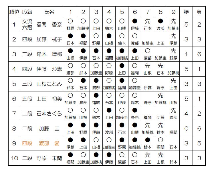 ・11/10(月)上川香織二段●-○石高澄恵三段