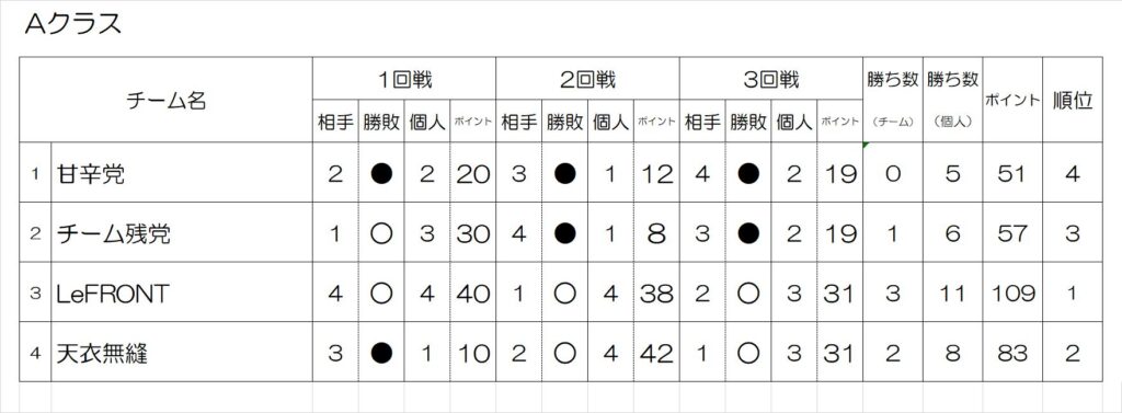 ・Aクラス(有段者) 45ポイント以下