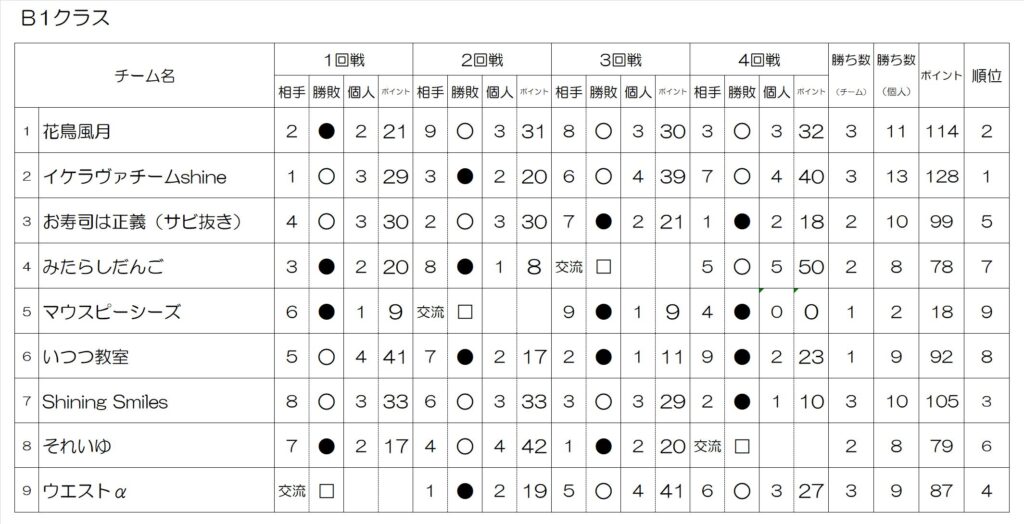 ・B1クラス(中級) 三段以上不可 35ポイント以下