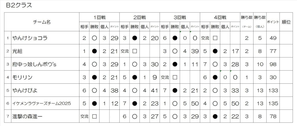 ・B2クラス(初級者)初段以上不可 20ポイント以下