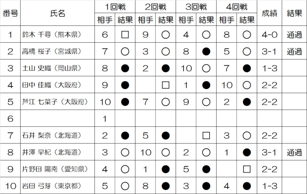 芦江七菜子(大阪)-石井梨奈(北海道) 盤面 棋譜
